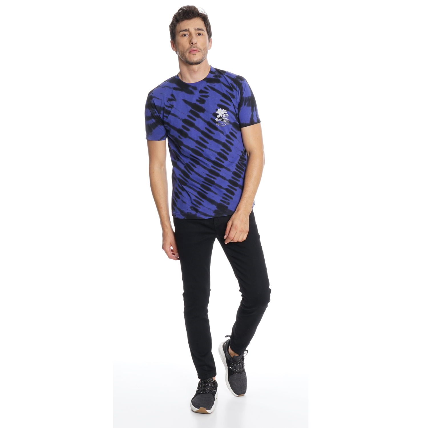 CMC68465 POLERA M/C SILICONE WASH PALMERA LOGO TIE DYE AZUL NEGRO