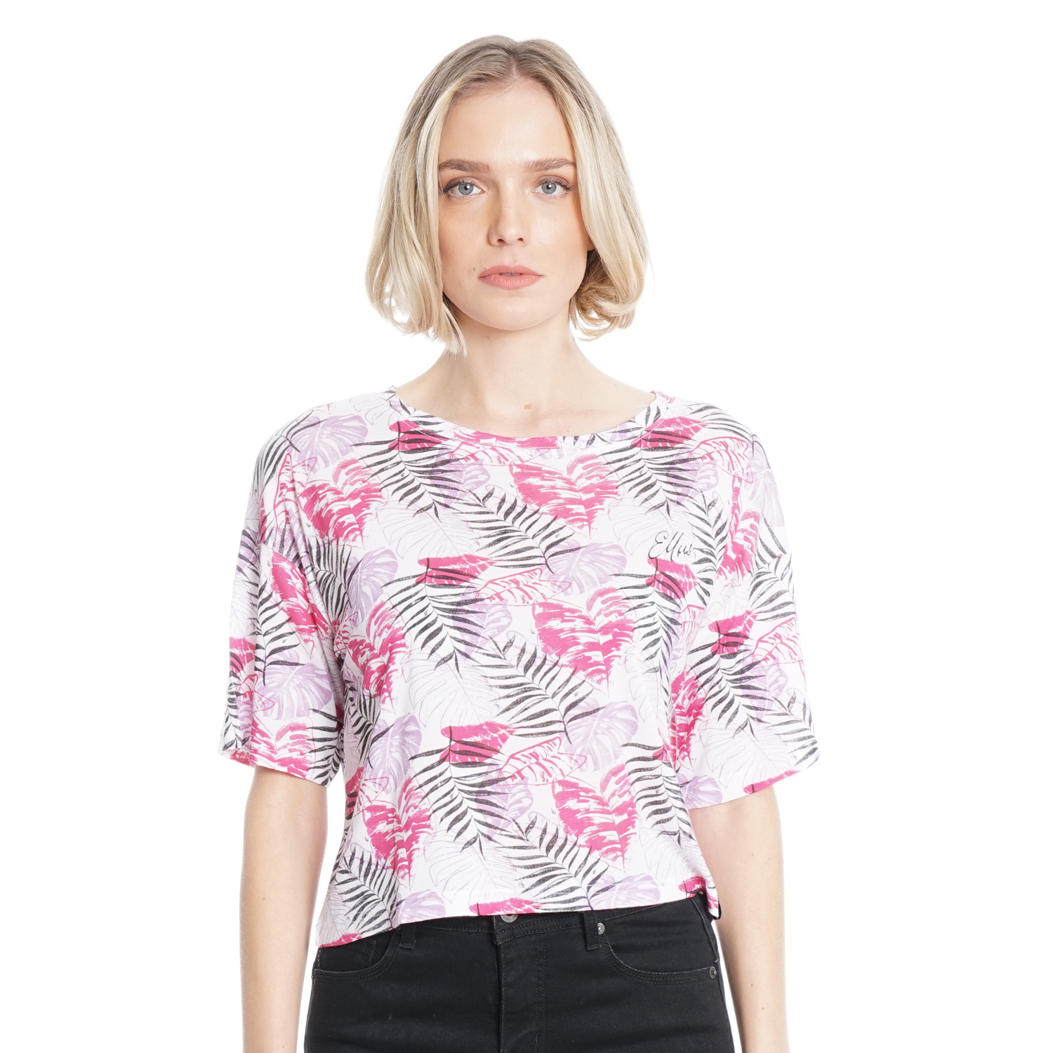 POLERA M/C 3/4 OVERSIZE CROPPED FULL PRINT TROPICAL PINK