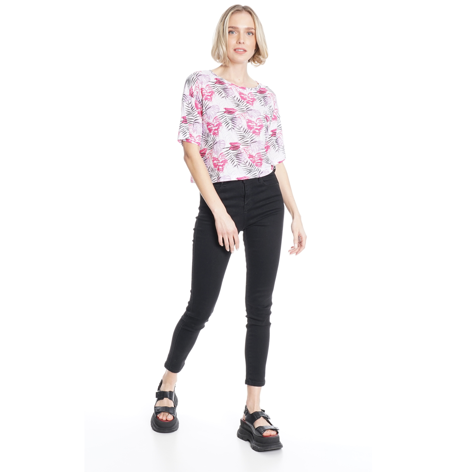 DFC50591 POLERA M/C 3/4 OVERSIZE CROPPED FULL PRINT TROPICAL PINK