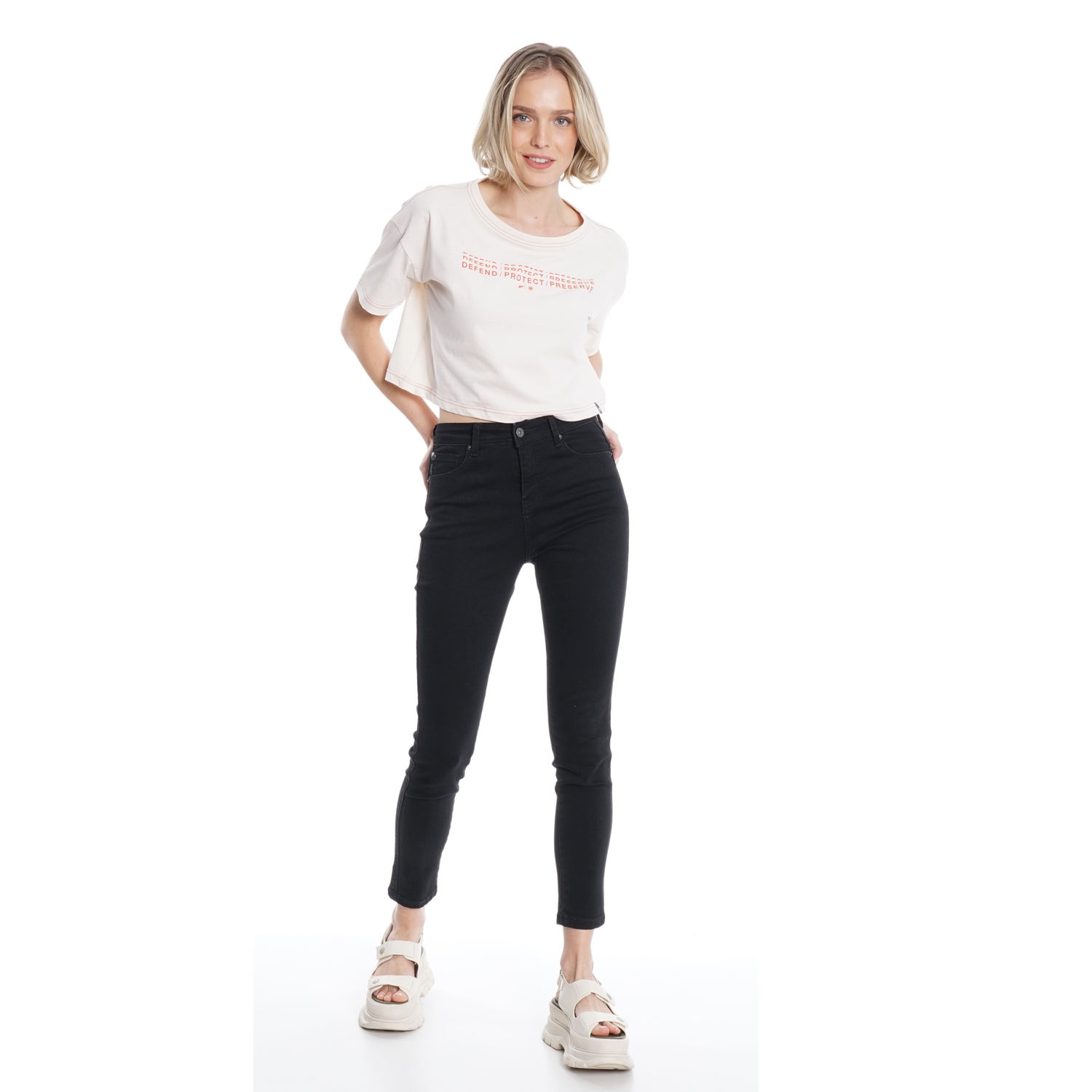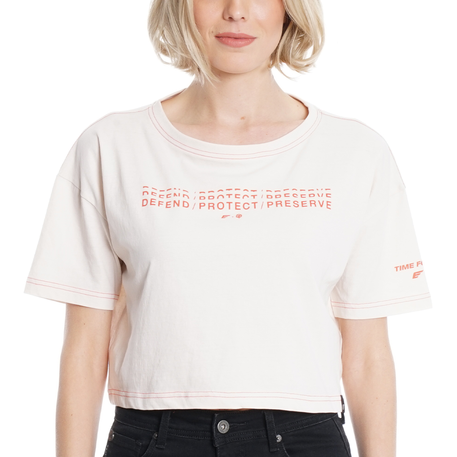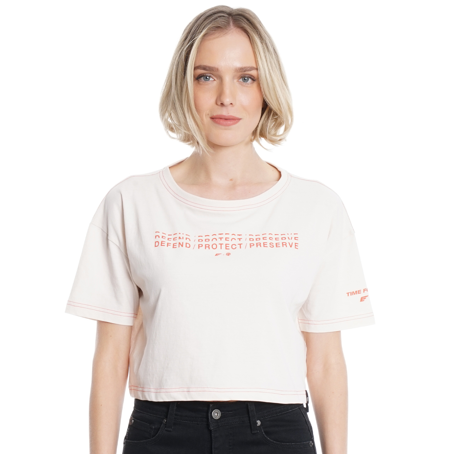 DFC67601 POLERA M/C SEMI CROPPED MANGA CAIDA TEXTO COSTURA COLOR